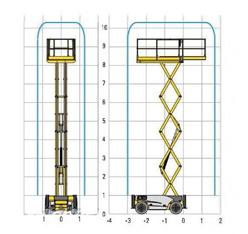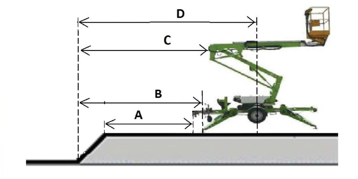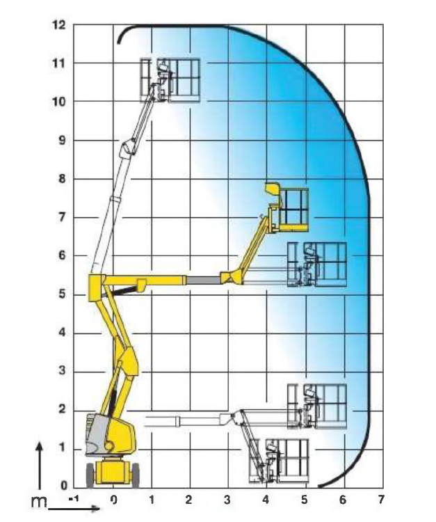 238. W oparciu o przedstawiony wykres pola pracy wskaż, która z pozycji uniesienia platformy jest niemożliwa: