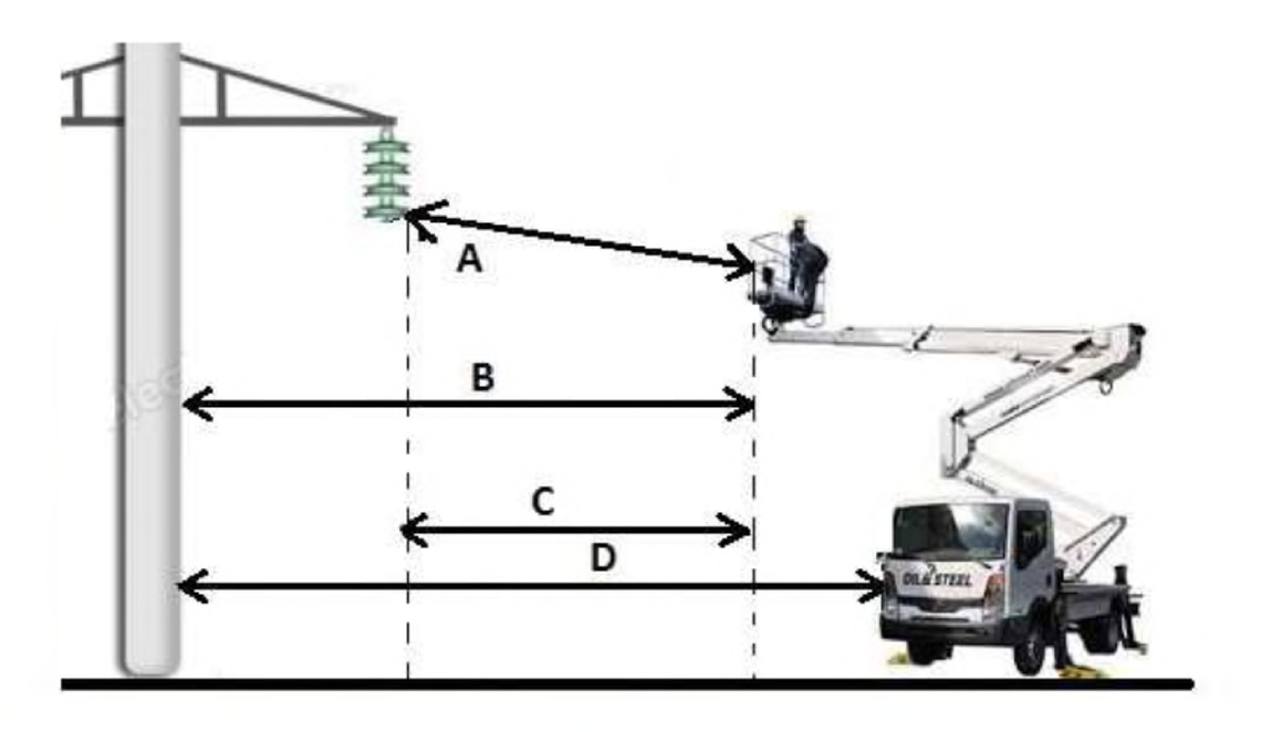 147. W oparciu o przedstawiony rysunek wskaż prawidłowy pomiar minimalnej odległości od linii elektroenergetycznych: