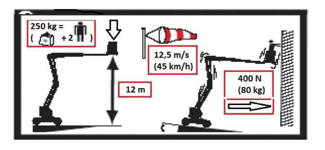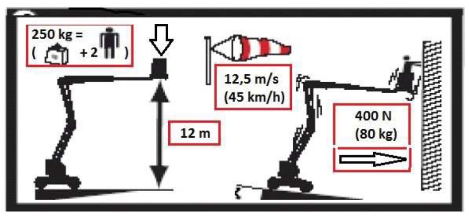 76. W oparciu o przedstawiony rysunek określ maksymalny udźwig podestu: