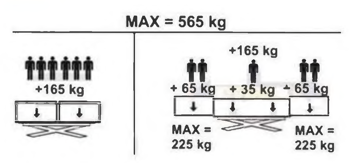 77. W oparciu o przedstawiony rysunek określ maksymalną ilość osób, które mogą przebywać na platformie roboczej:
