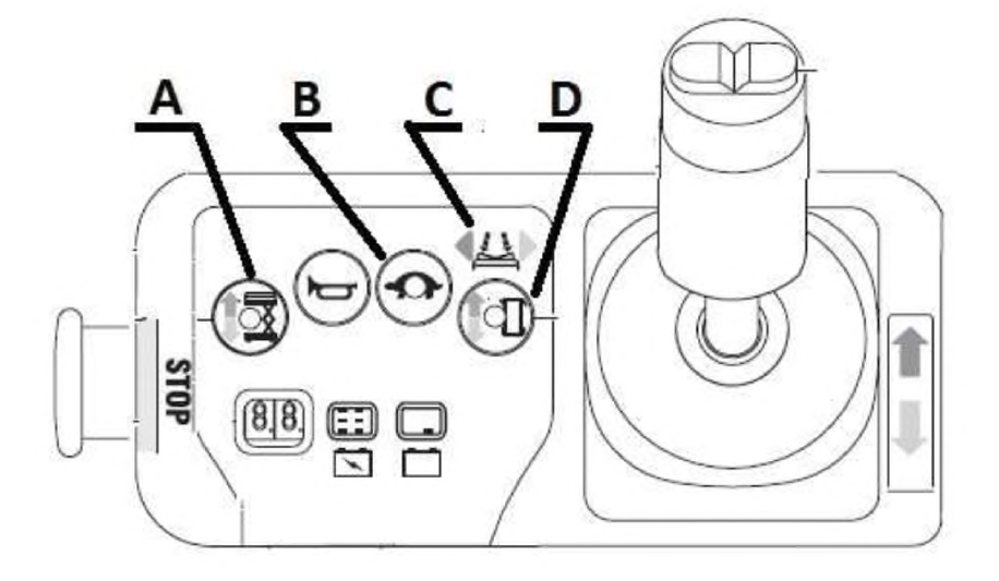 88. Który z oznaczonych piktogramów oznacza funkcję skrętu kół jezdnych podestu: