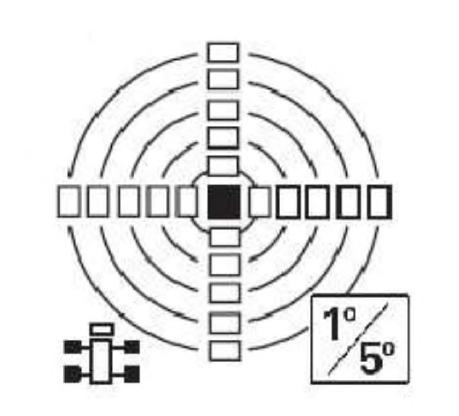 231. W oparciu o przedstawiony wykres pola pracy określ maksymalne dopuszczalne obciążenie platformy roboczej po lewej stronie pojazdu w odległości 6 m od osi obrotu: